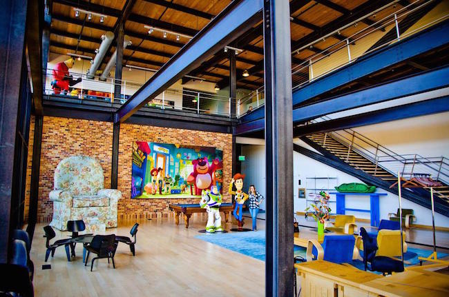 En el diseño de las oficinas de Pixar se involucró personalmente Steve Jobs porque estaba muy interesado en lograr que sus empleados se interrelacionaran los unos con los otros.