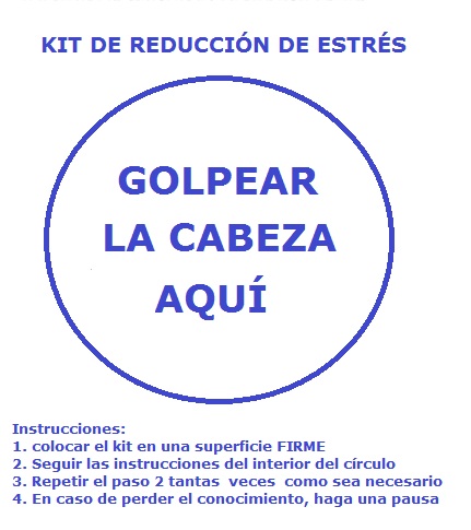 Tengo este kit de reducción de estrés pegado en la pared de mi escritorio. Da muy buenos resultados, aunque corres el riesgo de golpearte fuerte en la cabeza y terminar con alguna lesión cerebral.
