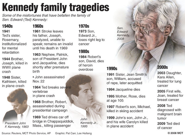 Tan solo 10 días después de accidente el patriarca del clan, Joseph Kennedy murió. Estaba ya enfermo, pero seguro que el disgusto que se llevó le aceleró su enfermedad.