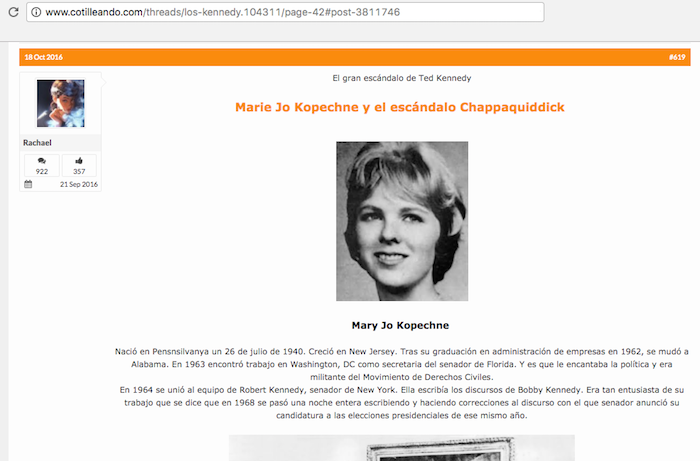No conocía la historia. Una tragedia para Mary Jo y repugnante la actuación de Ted Kennedy.