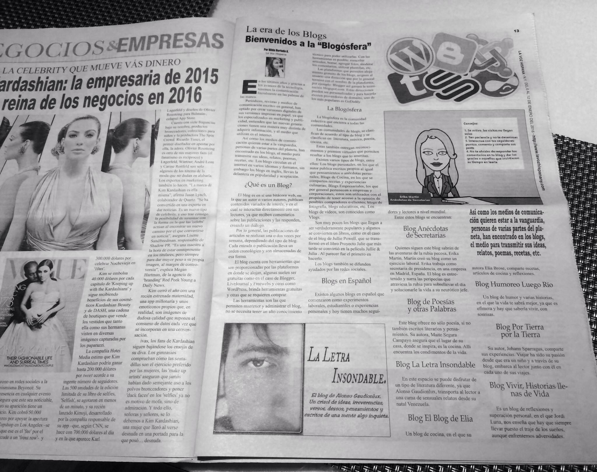 Empecé el año apareciendo en el periódico La Voz Hispana de Nueva York, en un artículo de Hilda Hurtado, en el que trataba sobre la Blogosfera. ¡Qué pasada!